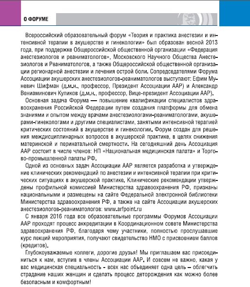 Всероссийский образовательный форум: "Теория и практика анестезии и интенсивной терапии в акушерстве и гинекологии" г.Нальчик